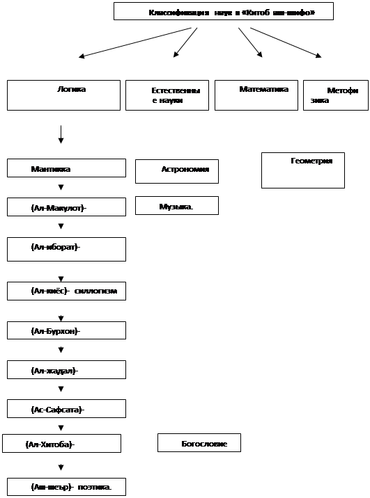 Рис. 3. Классификация наук по Ибн Сино в книге «Китоб-аш-шифо»